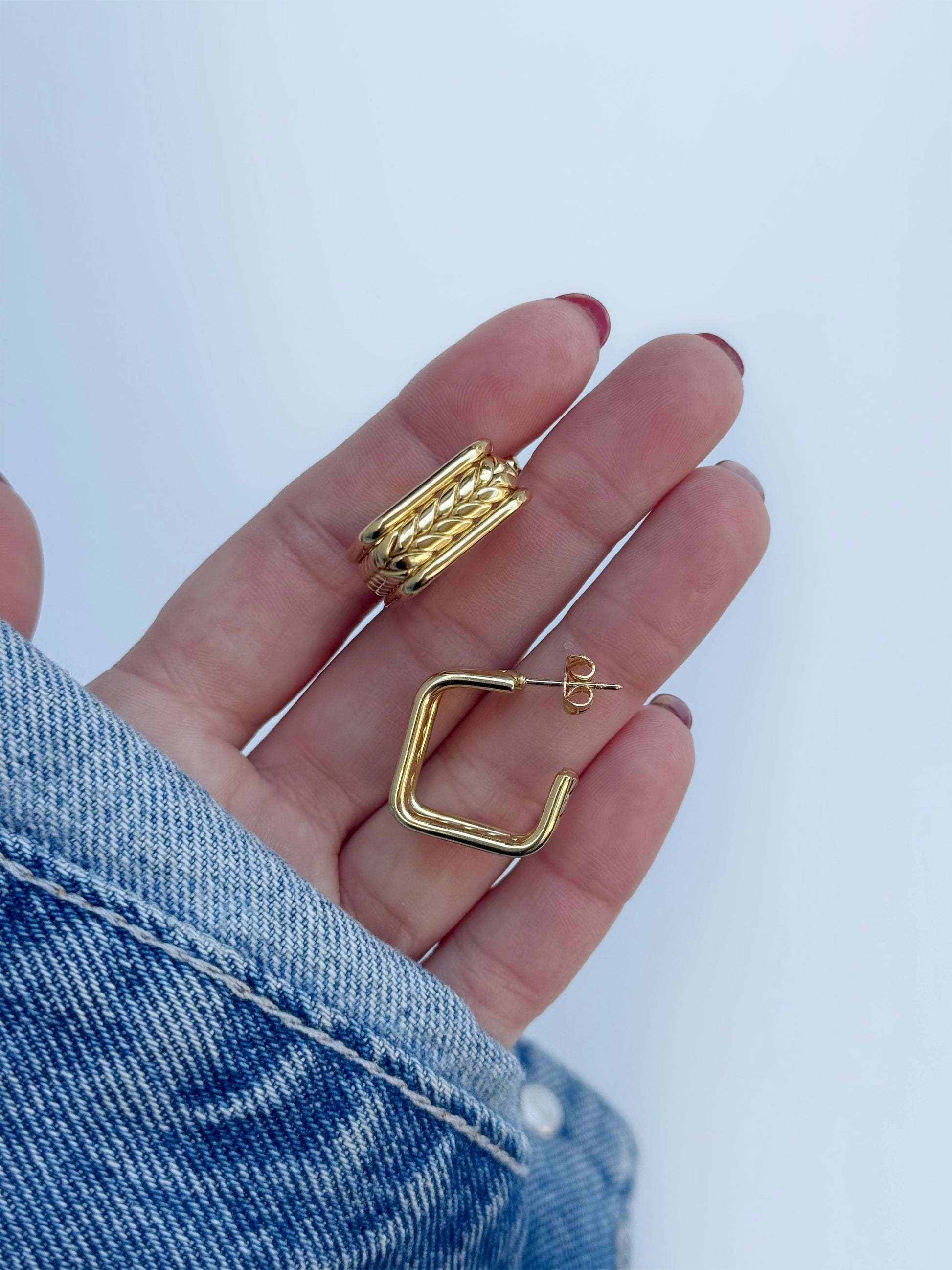 Aros cuadrados labrados acero dorado