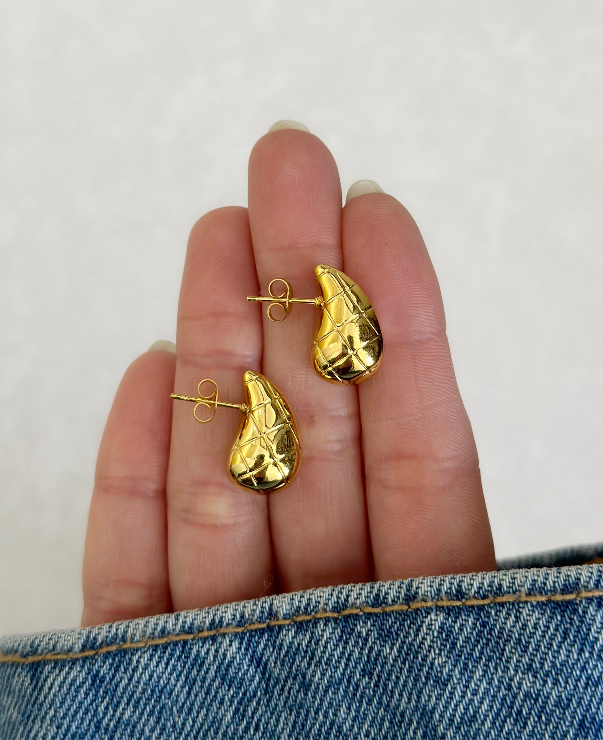 Caravanas gota acero dorado labrado cuadrados